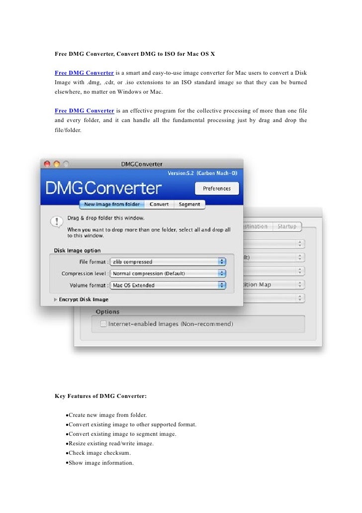 Apr 09, 2009 Convert the DMG to ISO and I found a way to do it – and the good thing is that the tool to be used for the conversion comes with Mac OS X and is a simple command line utility. This method only works on a Mac, so you have to convert the DMG file to an ISO on the Mac itself and then transfer and use the resulting ISO on your PC. When trying to convert a DMG to a ISO or CDR file for MacOS X, we have two options available. The first one is by using just Disk Utility, a preferred method if you don’t like working with Terminal. The second method is by using the command line by using Terminal.